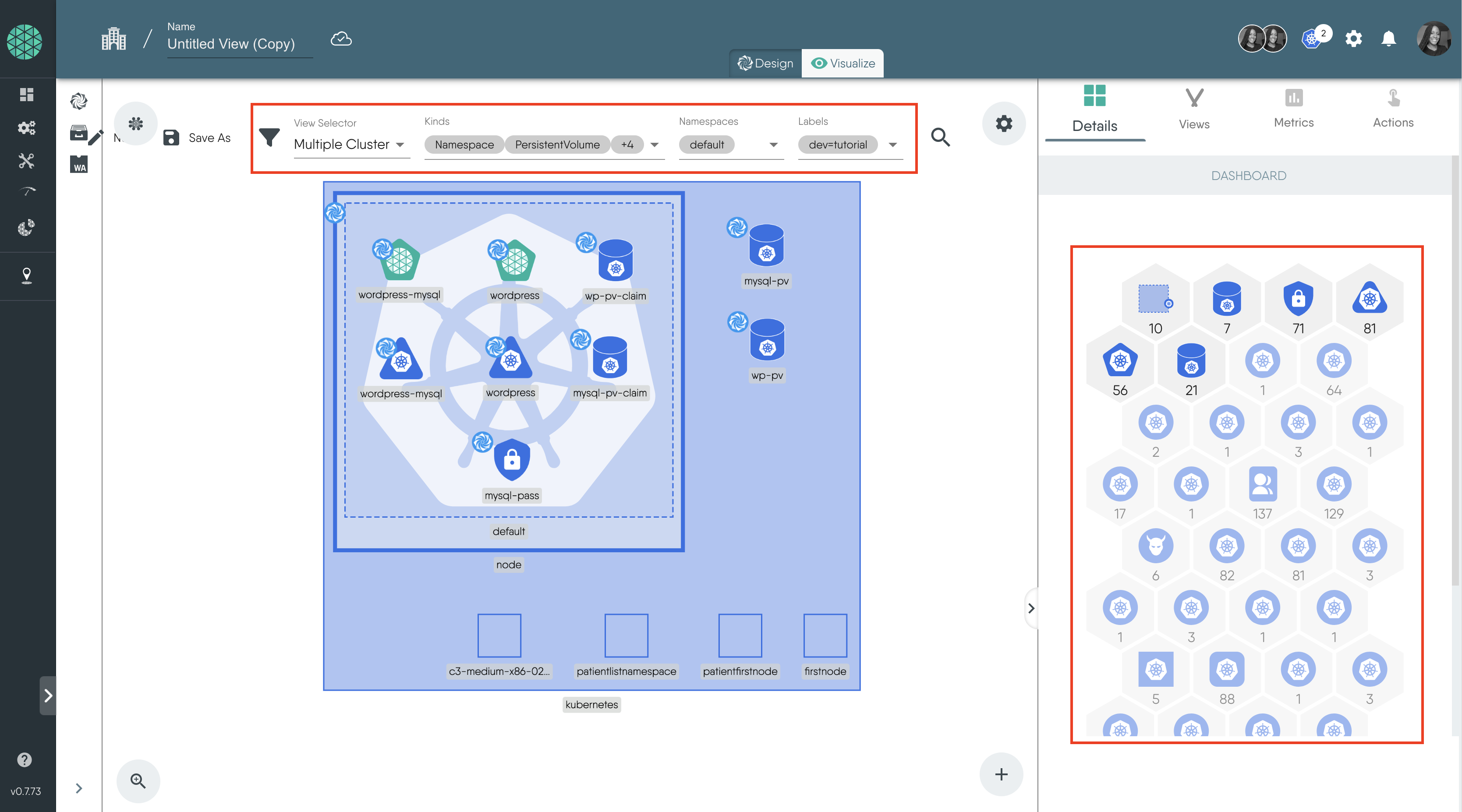 Deployment, Service, PersistentVolume, PersistentVolumeClaim and Secretdev=tutorialYou can also use the icons on the right sidebar to filter the resources.